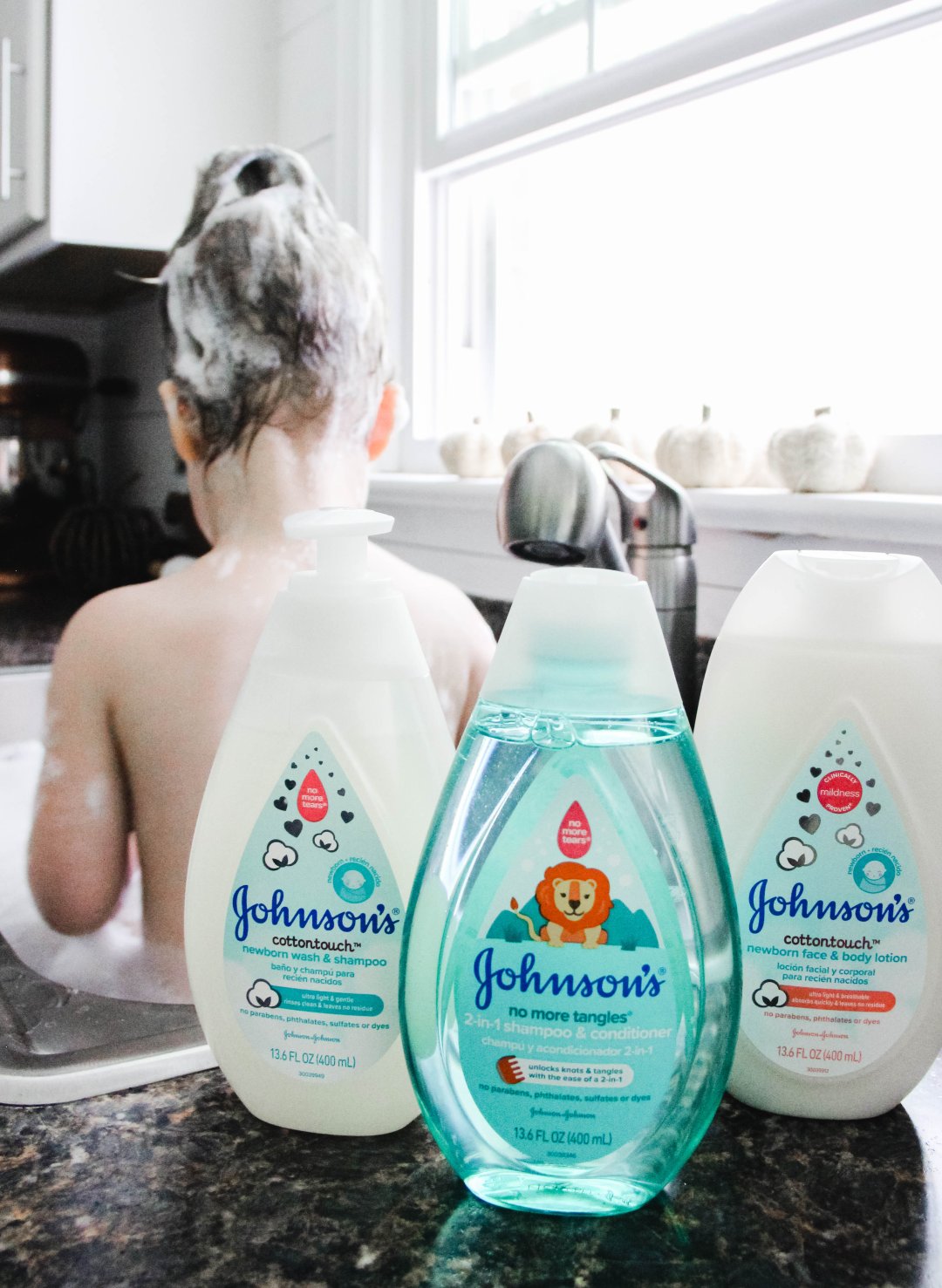 We have also been loving the new redesigned bottles. The enhanced functionality of adding the pump to the top of the bottles to help a mama out when she has full hands makes bath time so much smoother. So not only is it simpler to use for mama, but it's also simpler, gentler products that 9 out of 10 parents would recommend. We love that JOHNSON'S® is 100% gentle, and free of parabens, and phthalates.